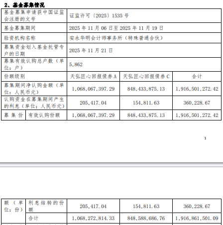 中国经济网北京11月24日电 近日,天弘基金发布关于天弘原创回归债券型证券投资基金合同有效性的公告。融资期间认购净额为1,916,501,272.42元,融资期间运用资金应计利息为360,228.67元,募集股份总数为1,916,861,501.09元。基金经理张宇2010年7月至2011年8月任建信资产管理有限公司副研究员。2011年8月至2012年11月任中信证券股份有限公司研究员。2013年1月加入天弘基金管理有限公司,离职后担任研究员、投资经理。任命基金经理于 2020 年 7 月生效。